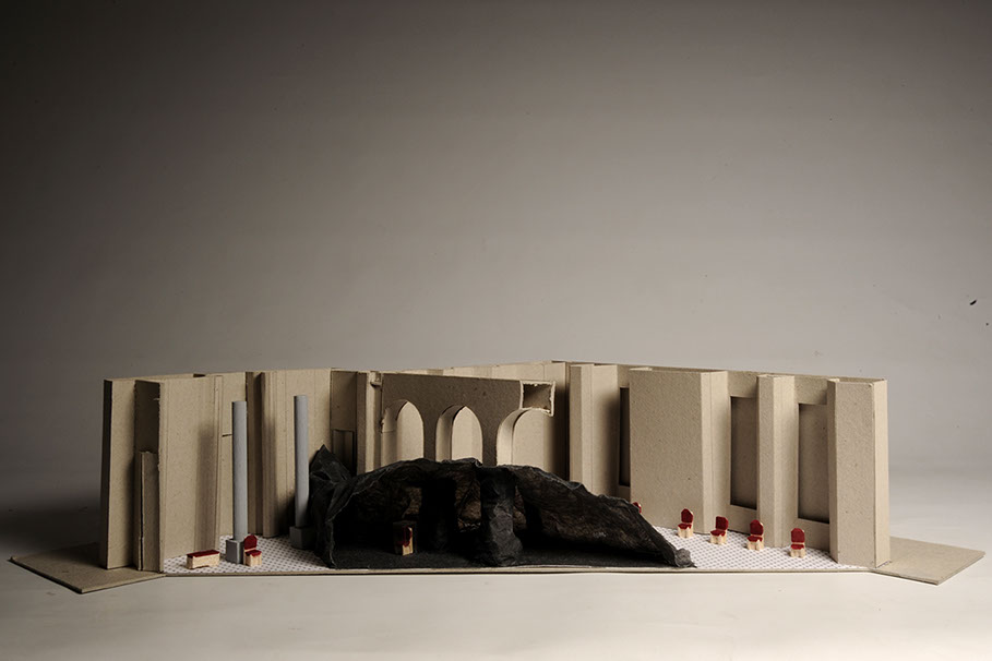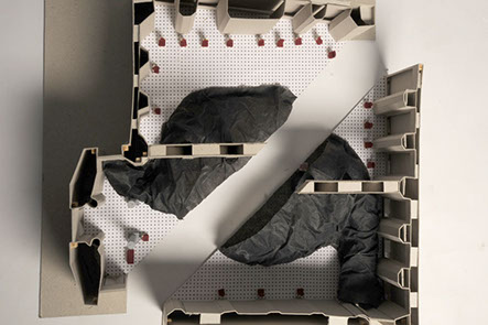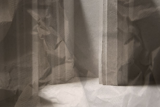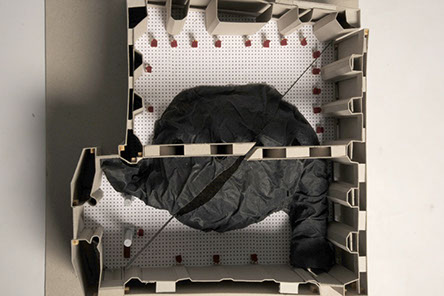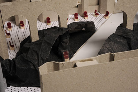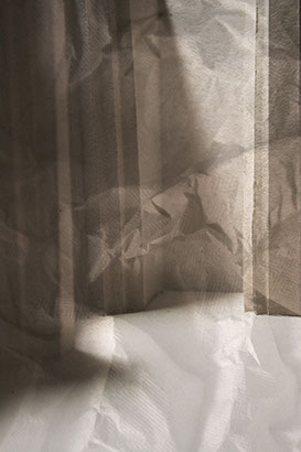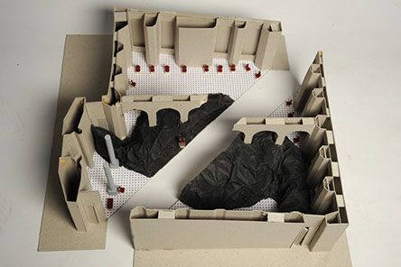 À travers les parois de la "grotte", on devine le faste de la pièce, comme imprimé sur la surface du tissu. Les bruits de pas du visiteur sont enregistrés et rediffusés depuis l’extérieur de la structure, comme s’ils étaient très lointains.