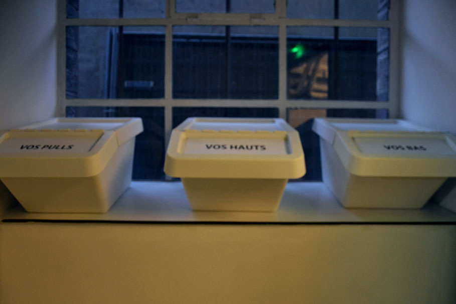 Les visiteur·euse·s peuvent laisser tous leurs habits et autres biens dans des casiers prévus à cet effet. Toutes leurs affaires s'y mêlent.