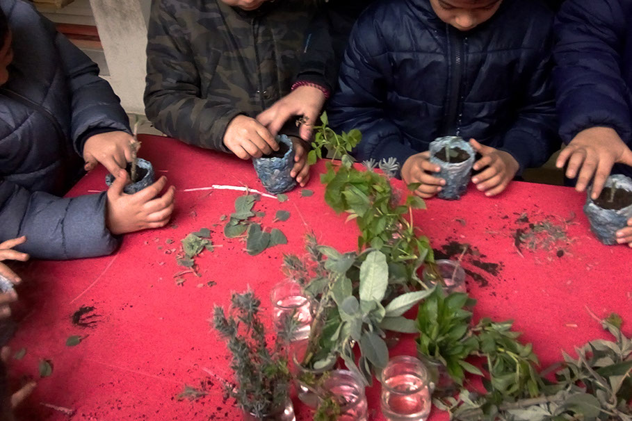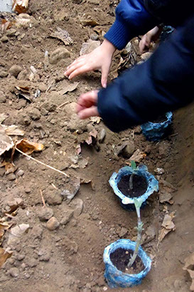 Séance 3. Repiquage des boutures à l'intérieur des pots biodégradables. Plantation des pots et aménagement de l'espace planté.